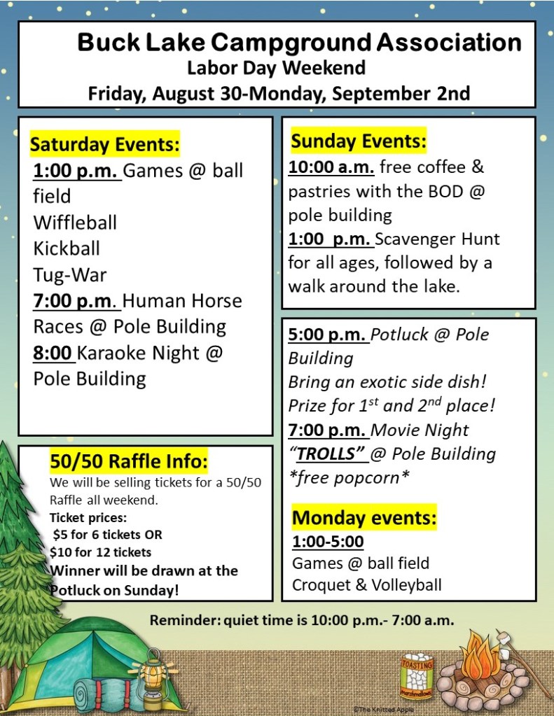 Labor Day 2024 Posted byBuck Lake AdminAugust 6, 2024Posted inHoliday Events Share this: Click to share on X (Opens in new window) X Click to share on Facebook (Opens in new window) Facebook Like Loading... Related